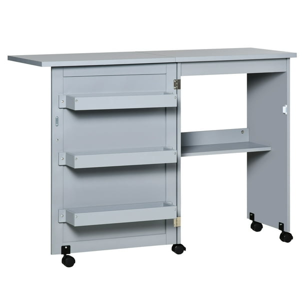 Homcom 46 Drop Leaf Mobile Sewing Table With 3 Tier Storage Bins Shelf Grey Walmart Com
